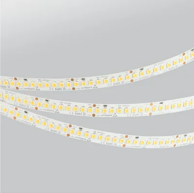 Высокоэффективные UL ленты, серия А200. Тип светодиодов 2835/3528 (А), 200 светодиодов на 1 метр. Лента разработана для применения в системах освещения на основе профиля. Высокая мощность 20 Вт/м в сочетании с высокой цветопередачей CRI90 и эффективностью >150 лм/Вт открывают новые возможности в современном дизайне освещения.
