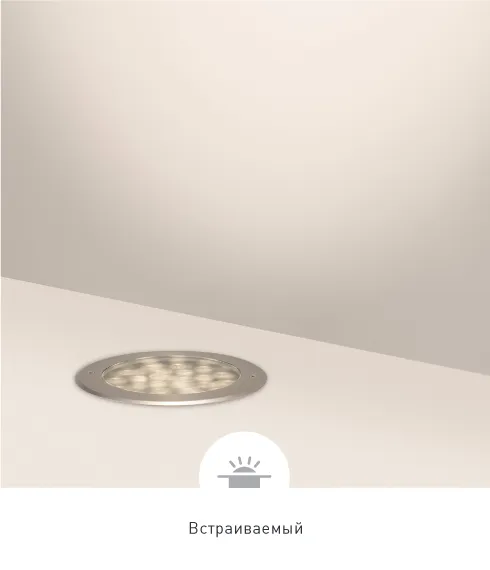 Основной корпус светильника выполнен из алюминия методом литья под давлением, а крышка — из нержавеющей стали. Это делает модель надежной и устойчивой к коррозии.