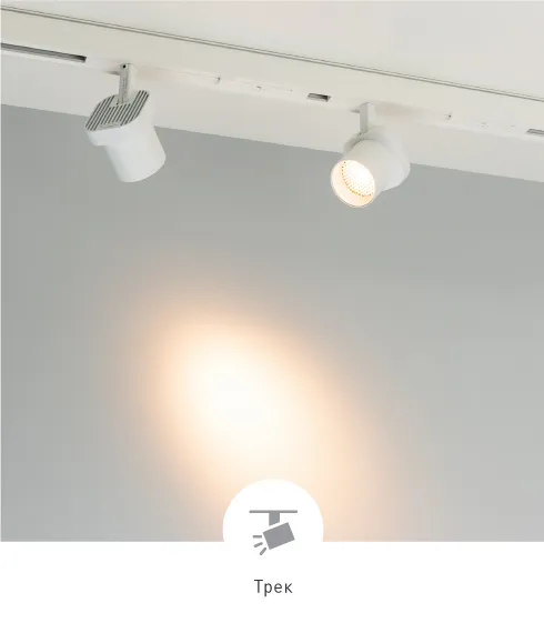 Светильник устанавливается в 3-фазный шинопровод при помощи адаптера, который располагается на одном уровне с треком.