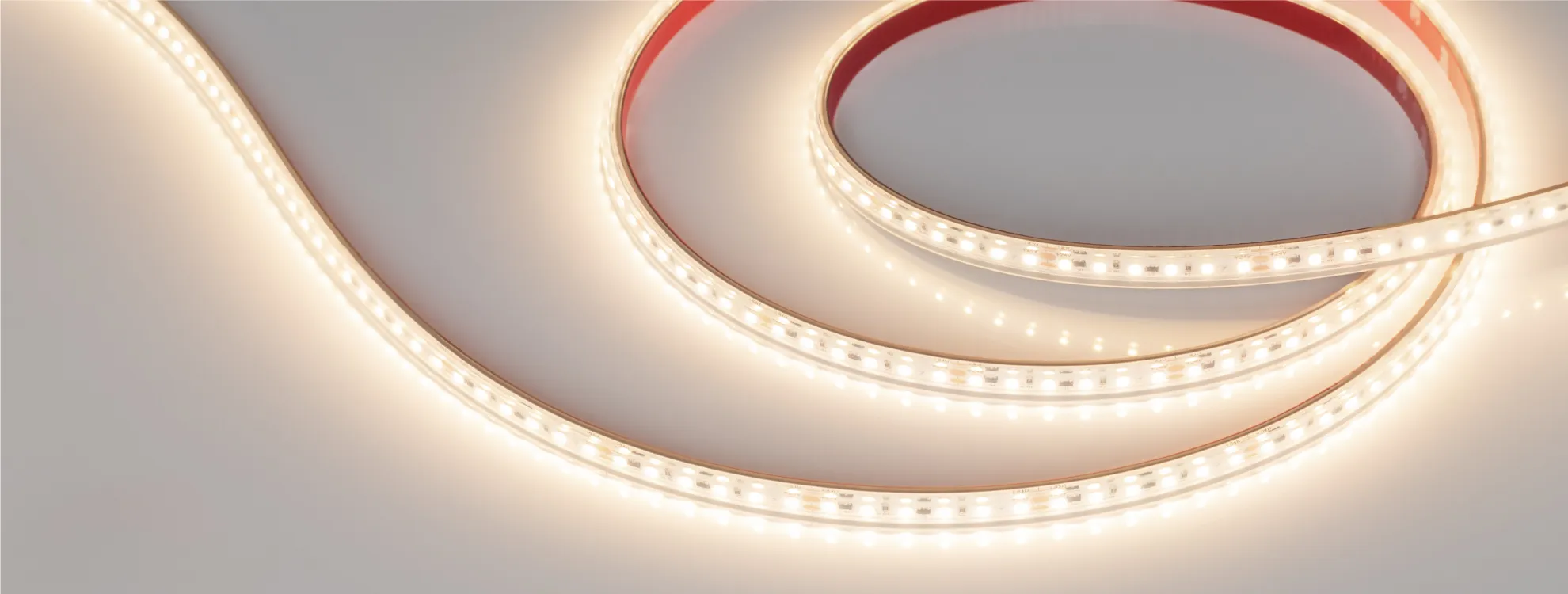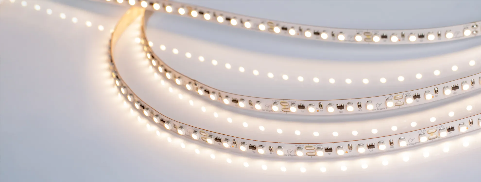 Стабилизированные ленты, серия A120. Тип светодиодов 2835/3528 (А), 120 светодиодов на 1 метр. Стабилизированная лента, 10 метров с подключением в одну линию. Стабилизаторы тока обеспечивают равномерное свечение по всей длине ленты даже при подключении только с одной стороны.