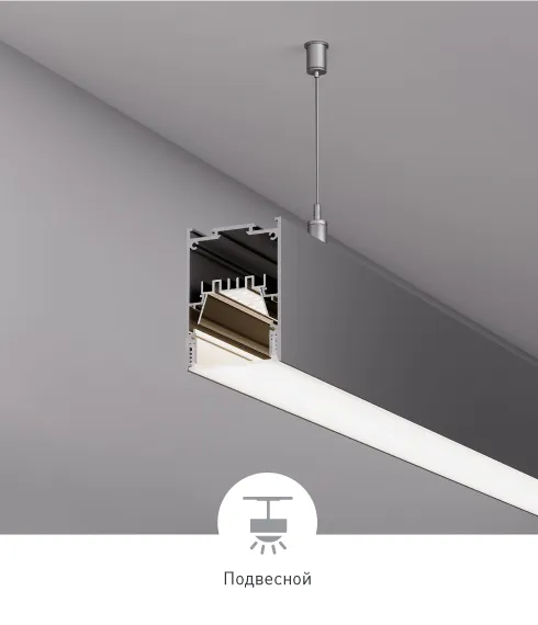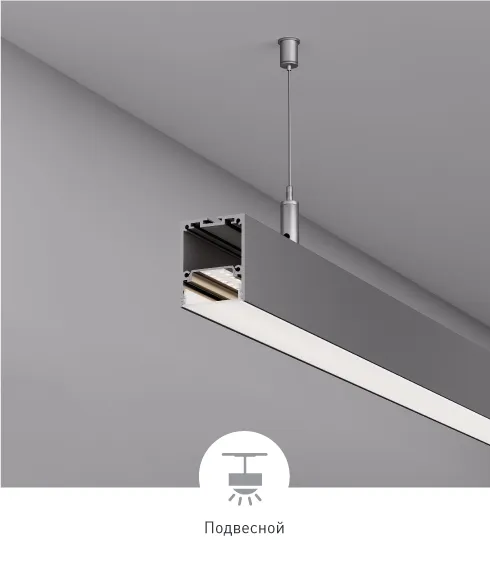 Профили подходят для изготовления подвесных линейных светильников. Модель IP-LINE-4050 также можно монтировать на стену накладным способом.