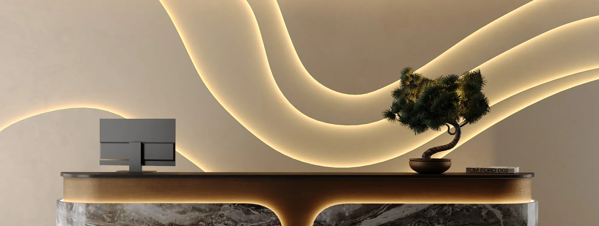 При встраивании гибкого неона с куполообразной формой сечения на поверхности образуется объемная линия света.