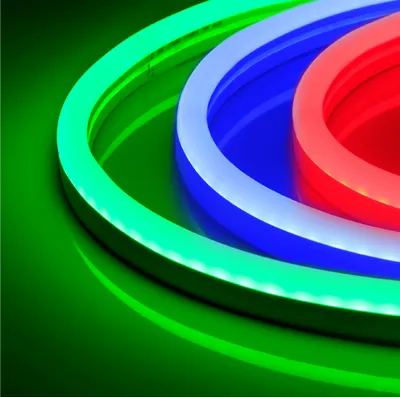 Гибкий неон NEON — отличное решение для RGB-подсветки ступеней, рекламных конструкций, а также для оформления кафе, баров, ванных и детских комнат. За счет прямоугольного сечения 26×17 мм гибкий неон легко встраивается в профиль и небольшие углубления в мебели. В серии представлены модели с напряжением питания 24 и 230 В.