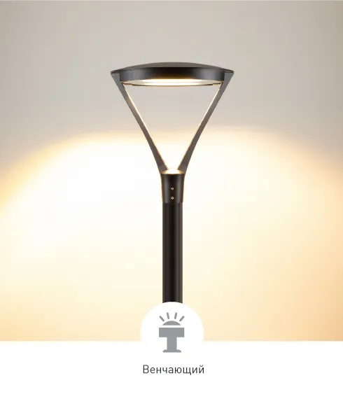 OSARIS — особый элемент ландшафтного дизайна. Теплое свечение 3000 K распределяется под углом 145×60°, наполняя пространства парков, скверов, пешеходных зон и набережных уютным светом для вечернего отдыха. Лаконичный дизайн также позволяет использовать светильники для освещения парковок и коттеджных поселков. Черный фигурный корпус изготовлен из алюминия.