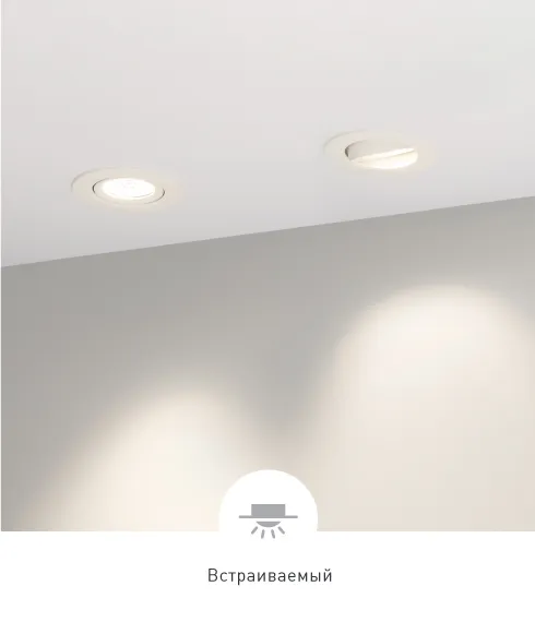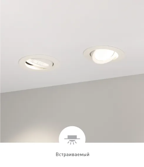 Встраиваемый поворотный светильник с низким коэффициентом дискомфорта (UGR<19), благодаря чему достигается комфортное освещение. Предназначен для освещения торговых, офисных, жилых и других помещений.