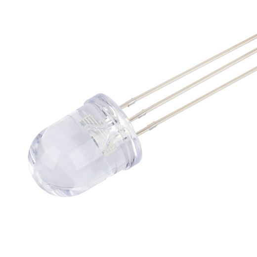 Поставка под заказ от 5000 шт. 10мм светодиод с прозрачной линзой. 2 цвета свечения - желтый 595нм и красный 625нм. 3 вывода, общий катод.