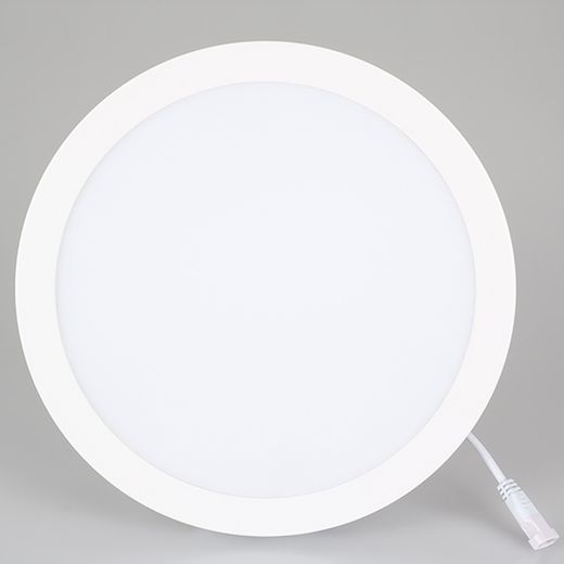 Светодиодная панель 24Вт, корпус белый IP40, круглый. Цвет ДНЕВНОЙ БЕЛЫЙ 4000K, св.поток 1920-2160лм, CRI(Ra)>80, угол 100°. Размер Ф225x26 мм, установка в отверстие 205 мм. Питание AC 180-240V, 24Вт, DC600mA 36...44V, драйвер в комплекте.