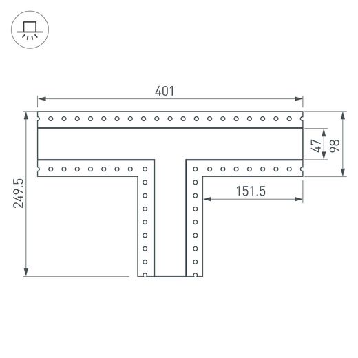 Т-образный угол в сборе со скрытым фланцем под строительную отделку для соединения трех профилей SL-LINIA45-FANTOM под прямыми углами 90° в одной плоскости в комплекте с матовым экраном и соединителями. Экран образует Т-образную фигуру на плоскости. Применятся при изготовлении светильников сложной геометрии.