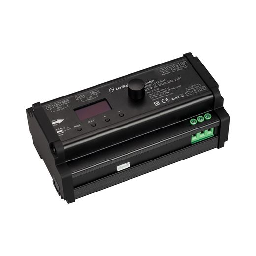 Диммер для одноцветных источников света (TRIAC). 4 режима работы: ручной (при помощи элементов управления на корпусе), DMX512, 0-10В и 2.4G. Протокол управления DMX512 с поддержкой RDM. Диммирование выполняется отсечкой фазы сетевого напряжения 230В, с управлением по переднему/заднему фронту. Возможна установка мин. яркости 5-40%, управление внешними диммерами 0-10В и 1-10В. Устройство совместимо с радиочастотными пультами управления и настенными панелями управления серии SMART. Возможна привязка до 10 пультов или панелей управления. Питание от 230В, 1 канал управления, максимальная нагрузка 6А на канал, выходная мощность 1440 Вт для резистивной нагрузки ламп накаливания, 720 В*А для светодиодных источников света. . Корпус - PVC, Led экран. Габариты 168х93.5х63 мм.