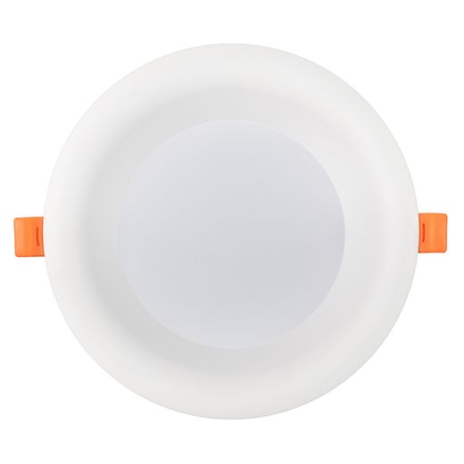 Встраиваемый светильник даунлайт с интегрированным в корпус драйвером. Мощность 16 Вт, св. поток 1340 лм, 84 лм/Вт, тёплый 3000 K, CRI>90, угол 100°, напряжение питания 230 В. Белый круглый корпус из алюминия, степень защиты IP20. Размер: диаметр 165 мм, высота 78 мм. Монтаж встраиваемый, установочное отверстие: диаметр 150 мм. Пульсация <2%.