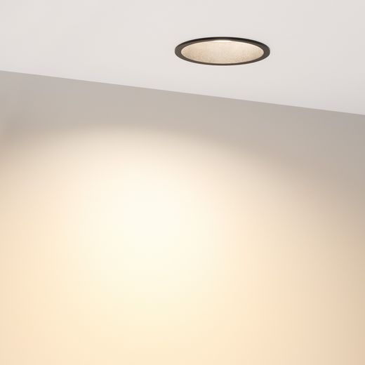 Встраиваемый круглый светильник c высоким индексом цветопередачи CRI>90 обеспечивает качественное освещение с точной передачей цветовых оттенков. Алюминиевый корпус черного цвета с утопленным светодиодным модулем является интересным дизайнерским решением, создавая эффект света из ниоткуда, делая освещение очень комфортным для глаз. Особая конфигурация корпуса позволяет эффективно отводить тепло и продлевает срок службы светодиодов. Светильник с широким углом рассеивания 85 градусов и светоотдачей 56 лм/Вт создает равномерное свечение без мерцаний. Легко устанавливается с помощью пружин в монтажное отверстие. Драйвер поставляется в комплекте и позволяет быстро подключать светильник напрямую к сети переменного тока 230 В. Диммирование возможно при замене штатного драйвера. Предназначен для основного освещения в жилых, коммерческих, торговых помещениях, где отсутствует контакт с водой.