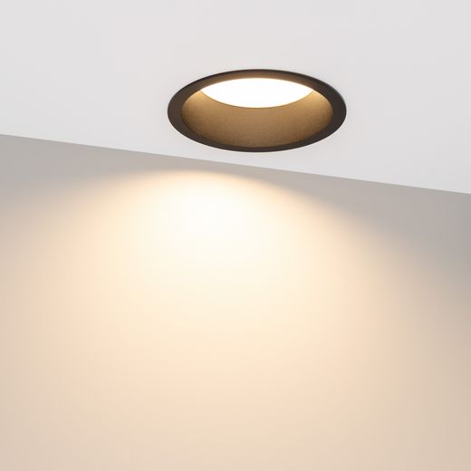 Встраиваемый круглый светильник с высоким индексом цветопередачи CRI>90 обеспечивает качественное освещение с точной передачей цветовых оттенков. Алюминиевый корпус черного цвета с утопленным светодиодным модулем является интересным дизайнерским решением, создавая эффект света из ниоткуда, а также делает освещение очень комфортным для глаз. Особая конфигурация корпуса позволяет эффективно отводить тепло и продлевает срок службы светодиодов. Светильник с широким углом рассеивания 90 градусов и высокой светоотдачей создает равномерное свечение без мерцаний. Легко устанавливается с помощью пружин в монтажное отверстие. Драйвер IP54, поставляется в комплекте и позволяет быстро подключить светильник напрямую к сети переменного тока 230 В. Диммирование возможно при замене штатного драйвера. Предназначен для основного освещения в жилых, коммерческих, торговых помещениях. Защита корпуса на уровне IP54 позволяет устанавливать светильник в местах с повышенной влажностью.