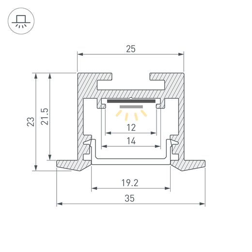 Встраиваемый профиль с накладным фланцем из алюминия белого цвета RAL9003 (порошковая окраска) для основной и контурной подсветки помещений. Габаритные размеры профиля составляют 2500 мм в длину, 35,6 мм в ширину и 23,2 мм в высоту паз установки 25 мм. Площадка для установки светодиодных лент позволяет использовать ленту шириной до 12 мм и мощностью до 28,02 Вт/м. Это обеспечивает гибкость в выборе светодиодных лент и создает потрясающие световые решения.