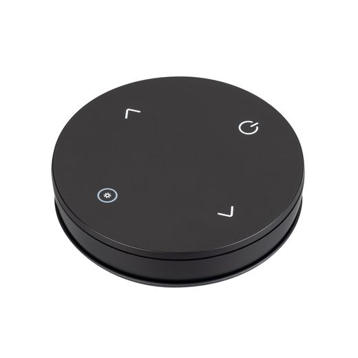 Кнопочный радиопульт 2.4 ГГц чёрного цвета для управления одноцветными (DIM) источниками света. 1 зона управления. Питание 3VDC (CR2032). Габариты 75x75x18 мм. Изготовлен из пластика с покрытием, защищающим от загрязнения. Магнитная основа. Управляет контроллерами и панелями серии SMART (поставляются отдельно).