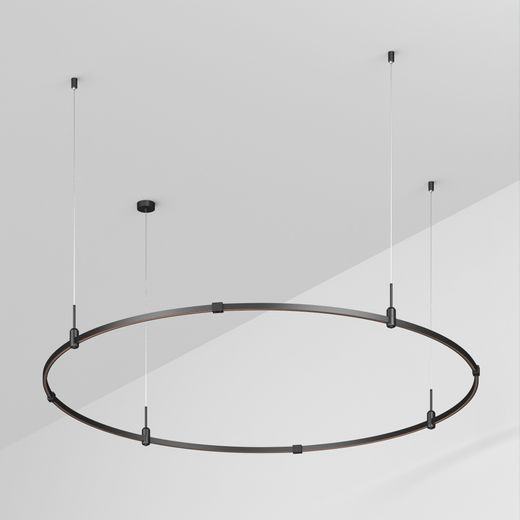 Подвесная конструкция APRIORI, форма круг. В комплекте треки с аксессуарами и гибкими подвесами. DC48V. Материал алюминий, цвет черный. Размер: диаметр 1500мм, высота 22мм. Светильники и источники питания приобретаются отдельно.