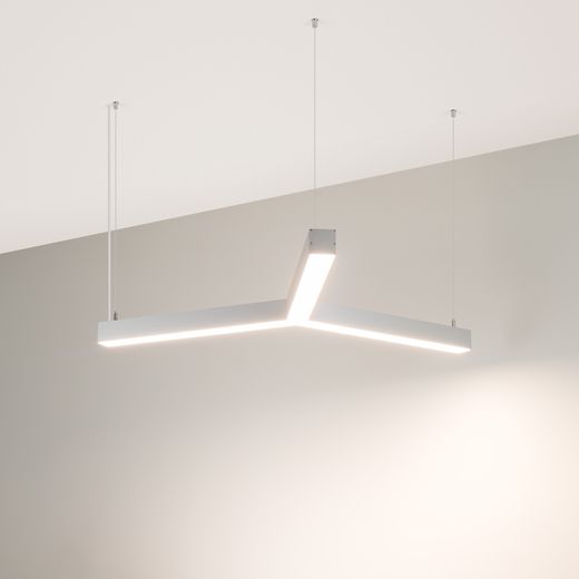 Светильник 3 ЛУЧА из профиля SL-LINE-5050-2500 ANOD+OPAL, цвет Day4000K (Лента в 2 ряд(а)), световой поток - 1700 Лм. Габаритные размеры светильника 790х910х50 мм (длина одного луча 510 мм), сечение профиля 50х50 мм. Способ установки - подвесной 2 м. Цвет корпуса - Серебристый. Степень защиты IP33. Мощность 34 Вт, питание 170-265 В. В комплекте 1 встроенный блок питания, подвесы 2 м и кабель. Гарантия 3 год(а). Поставка в сборке.