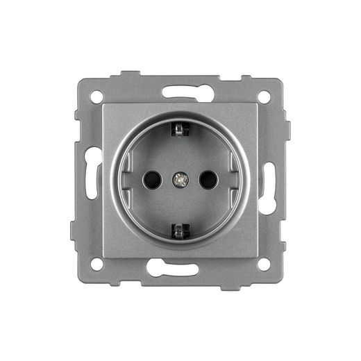 Механизм розетки с заземлением на 1 пост. Цвет - серый. Без фронтальной рамки. Уровень пылевлагозащиты IP20. Устанавливается в стандартный подрозетник.