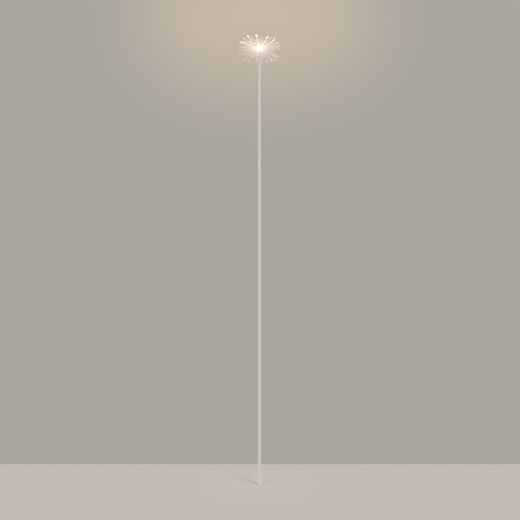 Уличный декоративный светодиодный светильник. Мощность 0.5 Вт, св. поток 13 лм, 92 лм/Вт, теплый 3000 K, CRI>80, угол излучения 24°, напряжение питания 24 В. Белый корпус из алюминия, прозрачный матовый рассеиватель из PMMA. Степень защиты IP65. Размер: диаметр 105 мм, высота 895 мм, высота углубления 155 мм. Монтаж в грунт с помощью основания пика (входит в комплект поставки). Драйвер приобретается отдельно.