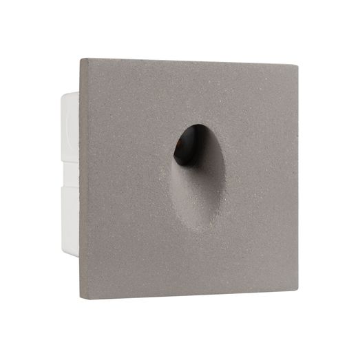Светодиодный встраиваемый квадратный светильник для стен, лестниц. Мощность 3Вт, световой поток 150 лм, теплый 3000К, угол 45x70°, CRI>80, напряжение 230 В. Квадратный корпус из бетона серого цвета и алюминия. Степень защиты IP65. Питание AC230V, мощность 3Вт. Размеры LхWхH 100х100x76 мм. Драйвер встроенный, пульсация <0.5%.