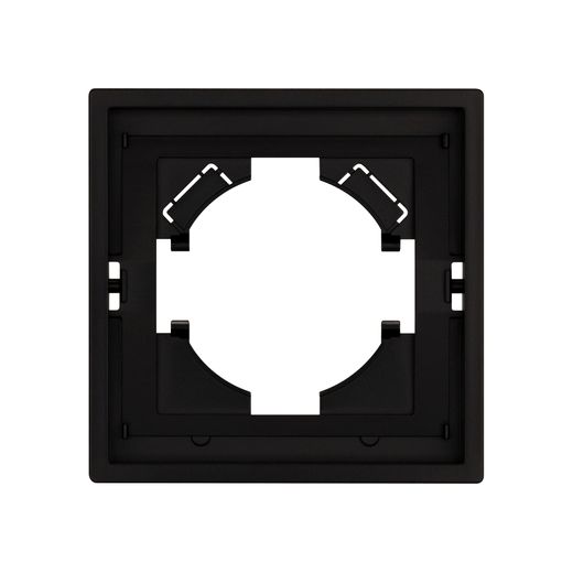 Корпус рамки выполнен в черном цвете и имеет матовое покрытие, что придает изделию приятные тактильные свойства. Высота рамки составляет 9 мм, что позволяет эффективно интегрировать рамку в интерьерные решения любого уровня сложности.