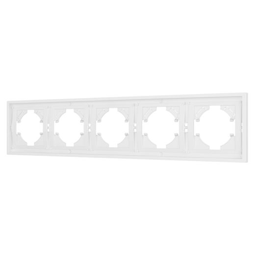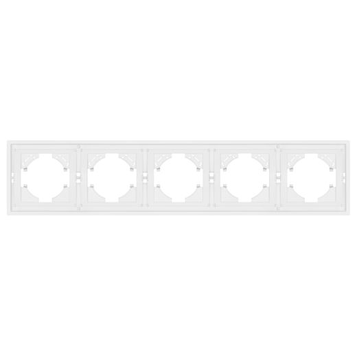 Рамка пластиковая на 5 постов, под встраиваемый механизм. Цвет - белый. Уровень герметичности IP20. Ориентация монтажа горизонтальная.