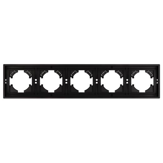 Рамка пластиковая на 5 постов, под встраиваемый механизм. Цвет - черный. Уровень герметичности IP20. Ориентация монтажа горизонтальная.