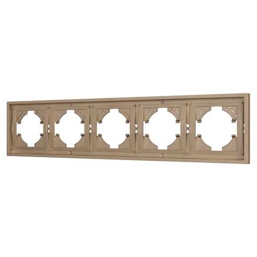 Рамка пластиковая на 5 постов, под встраиваемый механизм. Цвет - песочный. Уровень герметичности IP20. Ориентация монтажа горизонтальная.