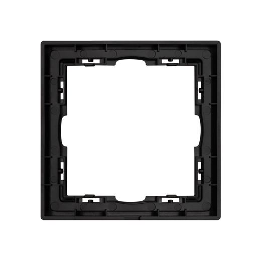 Корпус рамки выполнен в цвете черный оникс и имеет покрытие Soft-Touch, что придает изделию приятные тактильные свойства. Толщина корпуса составляет 8,5 мм, что позволяет эффективно интегрировать рамку в интерьерные решения любого уровня сложности.