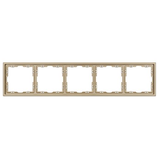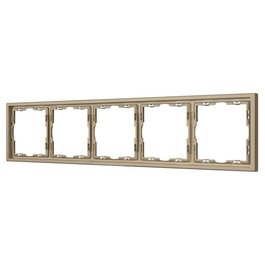 Рамка пластиковая на 5 постов, под встраиваемый механизм. Цвет - золотой песок, с Soft-Touch покрытием. Среднего уровня герметичности IP20. Ориентация монтажа горизонтальная.