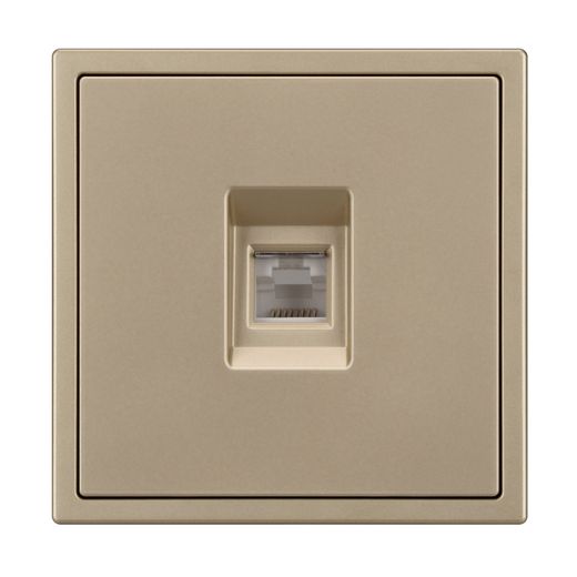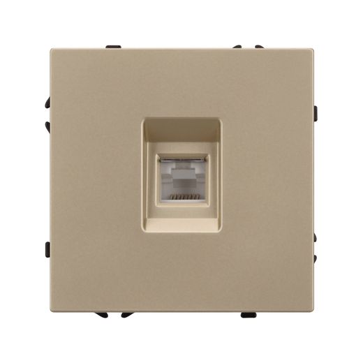 Механизм телефонной розетки. Цвет - золотой песок, с Soft-Touch покрытием. Без фронтальной рамки. Уровень пылевлагозащиты IP20. Тип подключаемого разъема - RJ11. Розетка устанавливается в стандартный подрозетник круглого сечения диаметром 60мм.