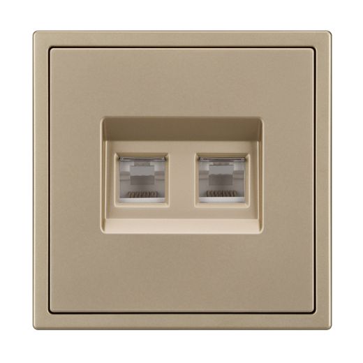 Механизм сдвоенной телефонной розетки совместим с рамками серии NOBE, создает утонченный минималистичный вид. Скрытый тип монтажа позволяет гармонично встроить в интерьер любого современного дизайн-проекта. Видимая часть механизма выполнена из высококачественного пластика цвета золотой песок и имеет Soft-Touch покрытие, что придает изделию приятные тактильные ощущения и стильный внешний вид.