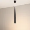 Подвесной светильник. Мощность 5 Вт, св. поток 400 лм, 70 лм/Вт, теплый 3000K, CRI>92, угол 36°, напряжение питания 230 В. Чёрный конусообразный вытянутый корпус из алюминия, линза из PMMA, степень защиты IP20. Размер: диаметр 76 мм, высота 670 мм. Монтаж подвесной, длина подвеса 2000 мм, регулируемая. В комплекте 2 вида чаш. Габариты встраиваемой чаши: Ø 80x41 мм. Габариты накладной чаши Ø80x60 мм. Драйвер 2,8-12В, 500 мА, пульсация <1%.