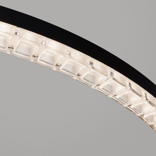 Подвесной светильник. Мощность 36 Вт, св. поток 3160 лм, 80-95 лм/Вт, дневной белый 4000K, CRI>90, угол 45°, напряжение питания 230 В. Чёрный круглый корпус из алюминия, экран PMMA, степень защиты IP20. Размер: диаметр 650 мм, высота 34 мм, ширина профиля 30 мм, размер чаши: диаметр 65 мм, высота 26 мм. Монтаж подвесной, длина подвеса 1200 мм, тип чаши встраиваемый, диаметр установочного отверстия чаши 60 мм. Драйвер 27-38 В, 1050 мА. Пульсация <0,3 %.