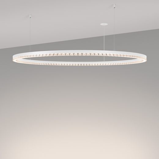 Под заказ. Подвесной светильник. Мощность 80 Вт, св. поток 7010 лм, 80-95 лм/Вт, дневной белый 4000 K, CRI>90, угол 45°, напряжение питания 230 В. Белый круглый корпус из алюминия, экран PMMA, степень защиты IP20. Размер: диаметр 1250 мм, высота 34мм, ширина профиля 30 мм, размер чаши: диаметр 65 мм, высота 26 мм. Монтаж подвесной, длина подвеса 1200 мм, тип чаши встраиваемый, диаметр установочного отверстия чаши 60 мм. Драйвер (2 шт.) 9-38 В, 1050 мА. Пульсация <0,3 %.