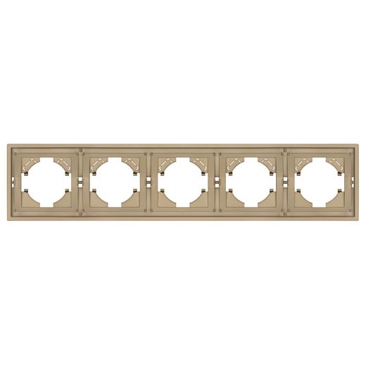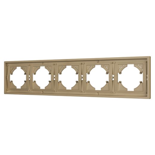Рамка пластиковая на 5 постов, под встраиваемый механизм. Цвет - матовый песочный, с Soft-Touch покрытием. Уровень герметичности IP20. Ориентация монтажа горизонтальная.