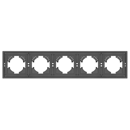 Рамка пластиковая на 5 постов, под встраиваемый механизм. Цвет - матовый графитовый, с Soft-Touch покрытием. Уровень герметичности IP20. Ориентация монтажа горизонтальная.