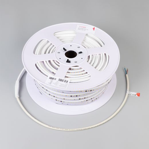 Светодиодная герметичная лента ARL серии A120 со степенью защиты IP65, защитная оболочка из ПВХ устойчива к УФ излучению, что позволяет использовать ее на улице. Высокий индекс цветопередачи CRI>85 обеспечивает точное восприятие цветовых оттенков. Лента подключается непосредственно к сети переменного тока 230 В и не требует использования источников питания. Наличие интегральных стабилизаторов тока позволяет подключать ленту длиной до 50 м, обеспечивая при этом равномерную яркость свечения по всей длине ленты. При подключении нескольких лент необходимо подавать питание на каждые 50 м отдельным кабелем, последовательное подключение лент более 50 м запрещается. Лента применяется для подсветки потолочных ниш, декоративной подсветки, создания контуров рекламных объектов, может использоваться в помещениях и на улице. На лентах установлены микросхемы с функцией снижения тока для защиты ленты от перегрева, обеспечивающие надежную работу в различных условиях. Диммирование в диапазоне 30%-90% осуществляется TRIAC диммерами с установкой минимального уровня яркости. Крепление с помощью скоб, аксессуары для монтажа и подключения поставляются отдельно.