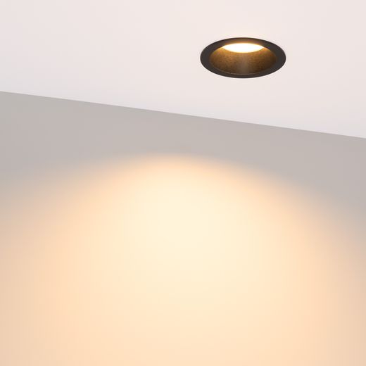 Встраиваемый круглый светильник с высоким индексом цветопередачи CRI>90 обеспечивает качественное освещение с точной передачей цветовых оттенков. Алюминиевый корпус черного цвета с утопленным светодиодным модулем является интересным дизайнерским решением, создавая эффект света из ниоткуда, а также делает освещение очень комфортным для глаз. Особая конфигурация корпуса позволяет эффективно отводить тепло и продлевает срок службы светодиодов. Светильник с широким углом рассеивания 85 градусов и высокой светоотдачей создает равномерное свечение без мерцаний. Легко устанавливается с помощью пружин в монтажное отверстие. Драйвер поставляется в комплекте и позволяет быстро подключить светильник напрямую к сети переменного тока 230 В. Диммирование возможно при замене штатного драйвера. Предназначен для основного освещения в жилых, коммерческих, торговых помещениях. Защита корпуса на уровне IP54 позволяет устанавливать светильник в местах с повышенной влажностью.