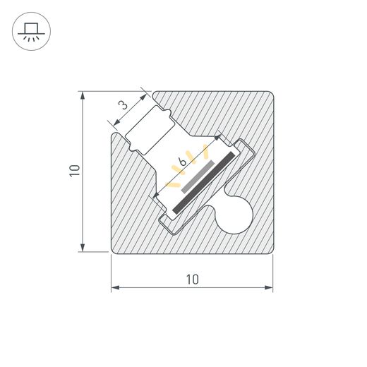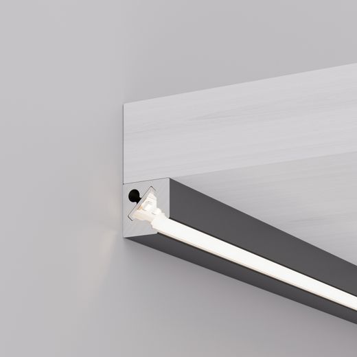 Накладной угловой профиль серо-стального цвета из алюминия в комплекте с матовым экраном из ПММА со светопропусканием 61% для подсветки мебели, пазов, ниш и других элементов интерьера. Габаритные размеры профиля составляют 2000 мм в длину, 10 мм в ширину и 10 мм в высоту. Площадка для установки светодиодных лент позволяет использовать ленту шириной до 6 мм и мощностью до 10 Вт/м.
