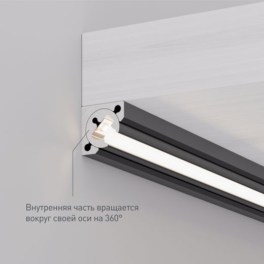 Комплект с экраном. Двухкомпонентный алюминиевый профиль для светодиодных лент и линеек. Цвет - серый графит. Внутренняя часть вращается вокруг своей оси на 360 градусов. Габаритные размеры (L×W×H): 2000x10x10 мм. Ширина площадки для ленты 5,6 мм. В комплекте с матовым экраном. Цена за комплект. Заглушки и другие аксессуары приобретаются отдельно.