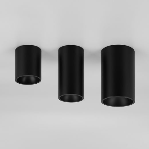 Накладной интерьерный светильник. Мощность 20 Вт, св. поток 1650 лм, 84 лм/Вт, теплый 3000 K, CRI>90, угол 40°, напряжение питания 230 В. Чёрный круглый корпус с черной вставкой из алюминия, степень защиты IP54. Размер: диаметр 95 мм, высота 152 мм. Монтаж накладной. Драйвер 28-43 В, 500 мА, пульсация <1%.