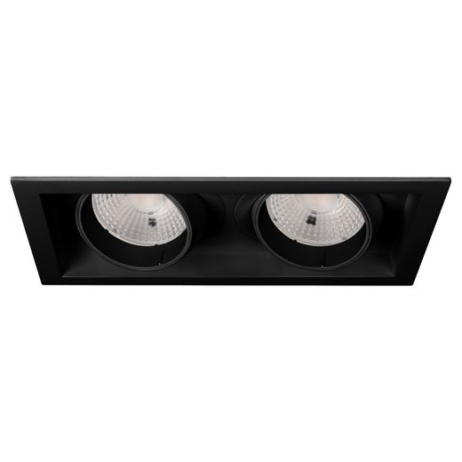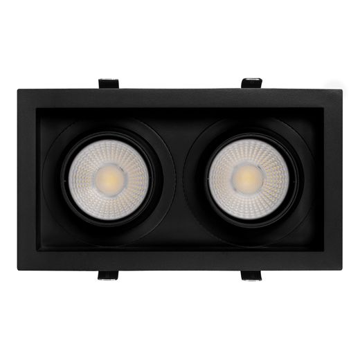 Поставка под заказ от 24 шт. Встраиваемый карданный светильник. Мощность 2х30 Вт, св. поток 5300 лм, 88 лм/Вт, тёплый 3000 K, CRI>92, угол 50°, напряжение питания 230 В. Чёрный корпус из алюминия, черная вставка, степень защиты IP20. Размер: длина 250 мм, ширина 140 мм, высота 125 мм. Монтаж встраиваемый, установочное отверстие: длина 230 мм, ширина 120 мм. Драйвер 24-42 В, 750 мА, пульсация <2%.