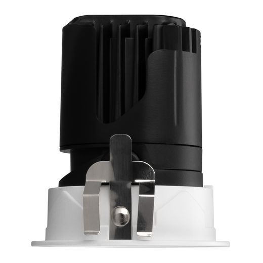 Встраиваемый светильник даунлайт. Мощность 7 Вт, св. поток 405 лм, 58 лм/Вт, теплый 3000 K, CRI>92, угол 24°, напряжение питания 230 В. Белый круглый корпус из алюминия, черный матовый отражатель, степень защиты IP20 . Размер: диаметр 62 мм, высота 72 мм. Монтаж встраиваемый, установочное отверстие: диаметр 55 мм. Драйвер, 27-42 В, 150 мА, пульсация <0,5%.