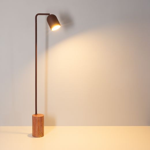Напольный светильник MASON. Мощность 6 Вт, световой поток 530 лм, световая эффективность - 88 лм/Вт, с изменяемой цветовой температурой 2700/3200/4000K, CRI>90, угол 120°, напряжение питания 230 В. Корпус цвета бургунди из алюминия, напольная база из натурального камня (красный травертин). Сенсорная кнопка на плафоне для настройки яркости и цветовой температуры. Степень пылевлагозащиты: IP20. Размеры: диаметр плафона 120 мм, высота плафона 170 мм, диаметр напольной базы 140 мм, общая высота светильника 1430 мм. Цвет и текстура камня могут отличаться.