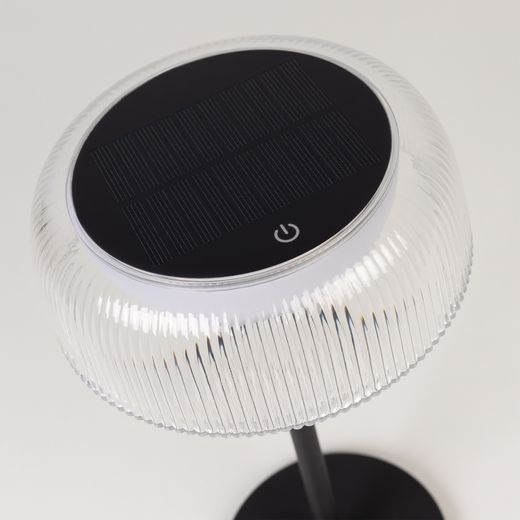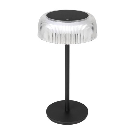 Настольный светильник со встроенным аккумулятором мощностью 4.7Вт, черный металлический корпус. Цвет теплый белый 2700К, св.поток 114 лм, CRI(Ra)>85, угол 130°. Размер ø151x270мм, диаметр основания Ø110. IP54. Тип встроенного аккумулятора 2000мАч, напряжение батареи DC3.7V. Солнечная батарея 0,9 Вт.