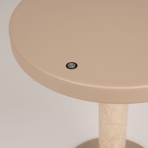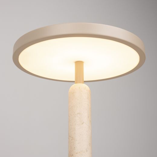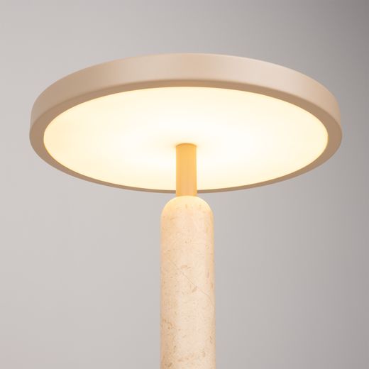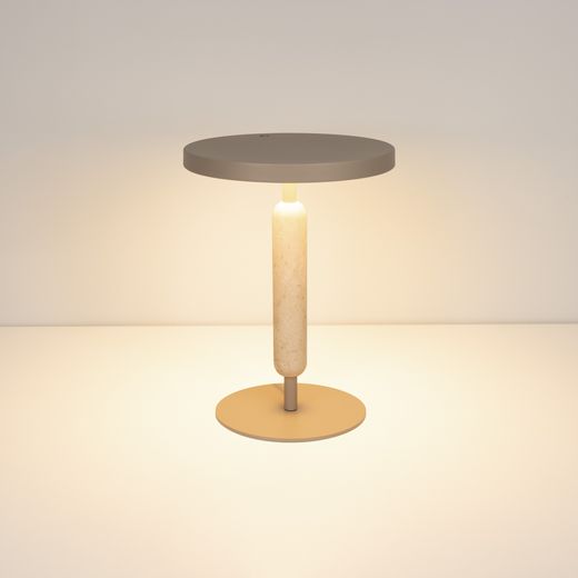 Настольный светильник ALYSS. С изменяемой цветовой температурой 2700/3200/4000К, переключается коротким нажатием на сенсорную кнопку на плафоне, диммирование происходит за счет ее удержания. Мощность 5 Вт, св. поток 195 лм, 39 лм/Вт, CRI>92, угол 110°, напряжение питания 230 В. Бежевый корпус из алюминия, декоративная вставка из мрамора, степень защиты IP20. Размер: диаметр 225 мм, высота 300 мм. Пульсация <1%.