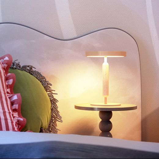 Настольный светильник ALYSS. С изменяемой цветовой температурой 2700/3200/4000К. Цт переключается коротким нажатием на сенсорную кнопку на плафоне, диммирование происходит за счет ее удержания. Мощность 5 Вт, св. поток 195 лм, 39 лм/Вт, CRI>92, угол 110°, напряжение питания 230 В. Бежевый корпус из алюминия, декоративная вставка из мрамора, степень защиты IP20. Размер: диаметр 225 мм, высота 300 мм. Пульсация <1%.