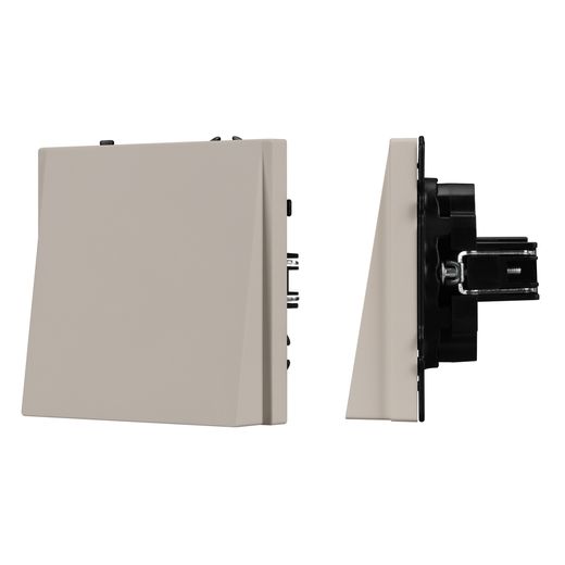 Механизм вывода кабеля на 1 пост. Цвет - кашемир, с Soft-Touch поверхностью. Без фронтальной рамки. Уровень пылевлагозащиты IP20. Вывод кабеля устанавливается в стандартный подрозетник круглого сечения диаметром 60мм.