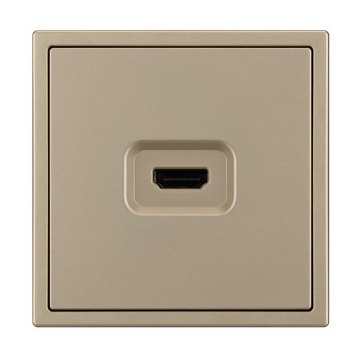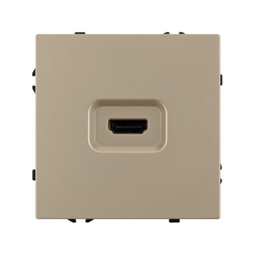 Механизм HDMI розетки на 1 пост. Цвет - золотой песок, с Soft-Touch покрытием. Без декоративной рамки. Уровень пылевлагозащиты IP20. Тип подключаемого разъема - HDMI (Female). Розетка устанавливается в стандартный подрозетник круглого сечения диаметром 60мм.
