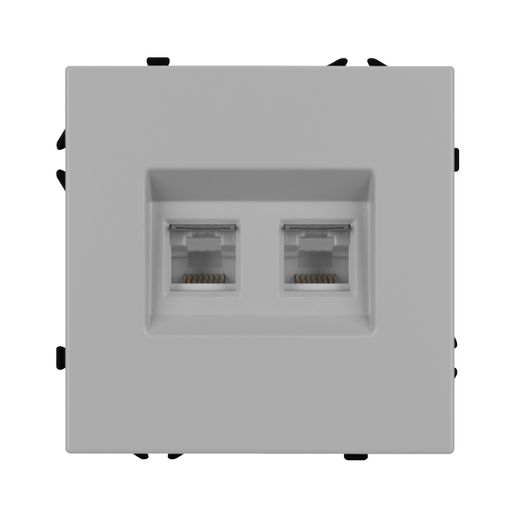 Механизм двойной телефонной розетки. Цвет - никель, с Soft-Touch покрытием. Без фронтальной рамки. Уровень пылевлагозащиты IP20. Тип подключаемого разъема - RJ11. Розетка устанавливается в стандартный подрозетник круглого сечения диаметром 60мм.